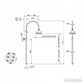Кронштейн душевой Nicolazzi Doccia 5605BZ, бронза, 150 мм