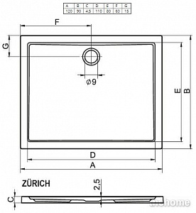Душевой поддон Riho Zurich 254, 120x90