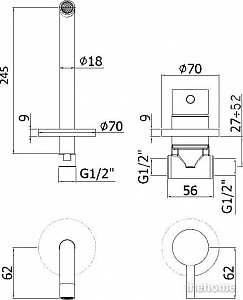 Смеситель OneLife P03-221cr для ванны с душем