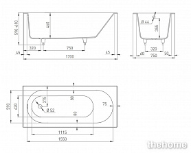 Ванна из искусственного камня S-Sense (Sapirit) Salini Sofia 164x75 см глянцевая 102511G
