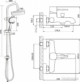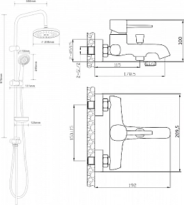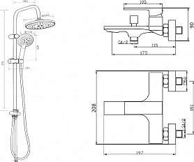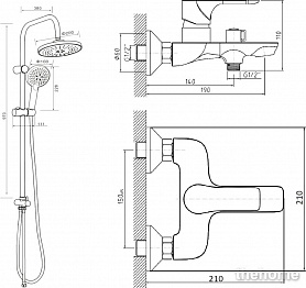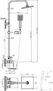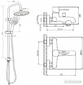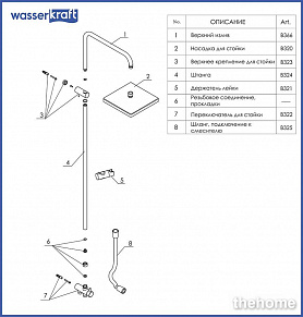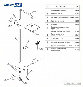 душевая стойка - 1 шт.,верхний душ - 1 шт.,смеситель -1 шт.,душевая лейка - 1 шт.,душевой шланг - 1 шт.,держатель для душа - 1 шт.,инструкция - 1 шт.