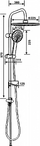 верхний душ - 1шт., шланг для душа - 1шт., термостат - 1шт., душевая лейка - 1шт., душевая штанга - 1шт., держатель лейки - 1шт., держатель штанги - 1шт., инструкция - 1шт.