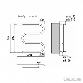 полотенцесушитель - 1шт.,держатель для п/с (без кольца) - 1шт.,паспорт изделия - 1шт.,гарантийный талон - 1шт.