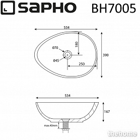 Раковина-чаша 53 см Sapho Punc BH7001 гранит
