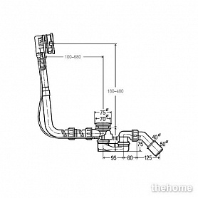 хромированная поворотная накладка переливного отверстия (верхняя), сливное колено 45°, хромированная розетка сливного отверстия