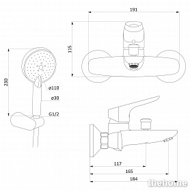 смеситель - 1шт., лейка - 1шт., шланг - 1шт., держатель лейки - 1шт., инструкция - 1шт.