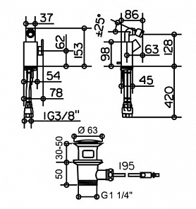 смеситель - 1 шт.,комплект подводки - 1 шт.,донный клапан - 1 шт..набор креплений - 1 шт.,инструкция - 1 шт.