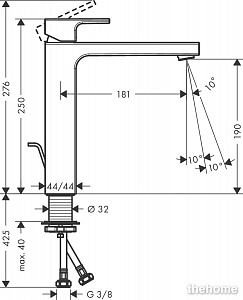 Высота излива, см